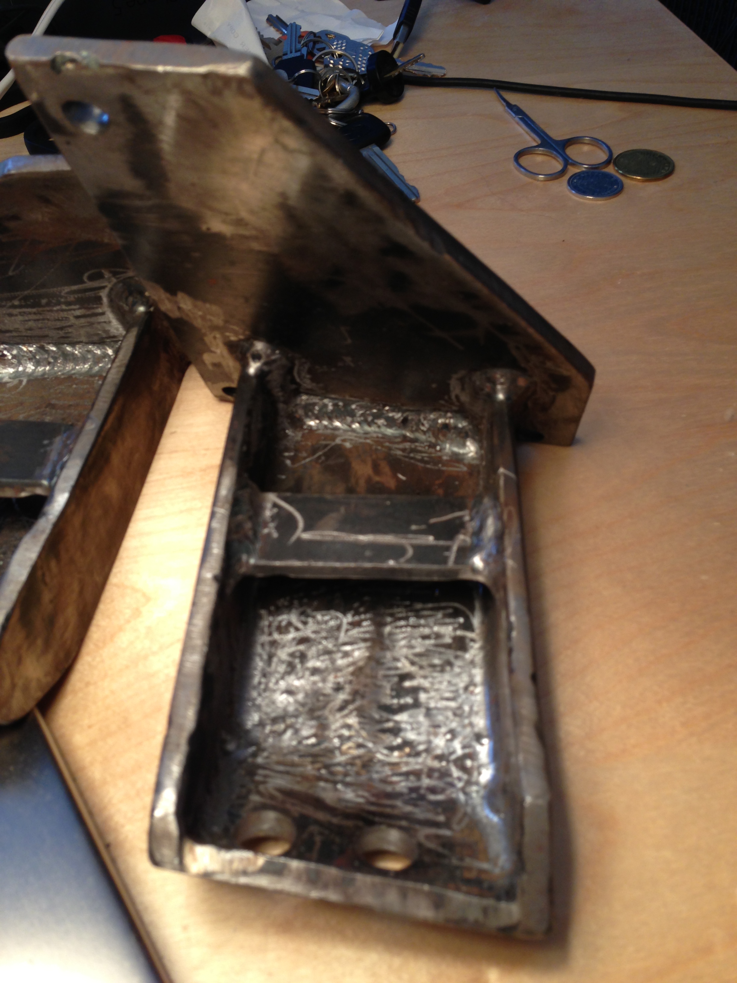 I received my mounts in bare metal, the welds look nicely done and are ground nicely. The metal is very thick and the mount feels sturdy.