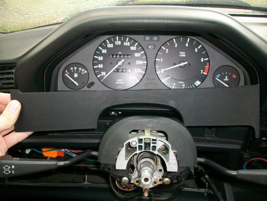 Some people remove the steering wheel to remove the cluster but I found this to be an unnecessary step. After removing the cluster I tilted it on its face and slid it towards the passenger side of the car.